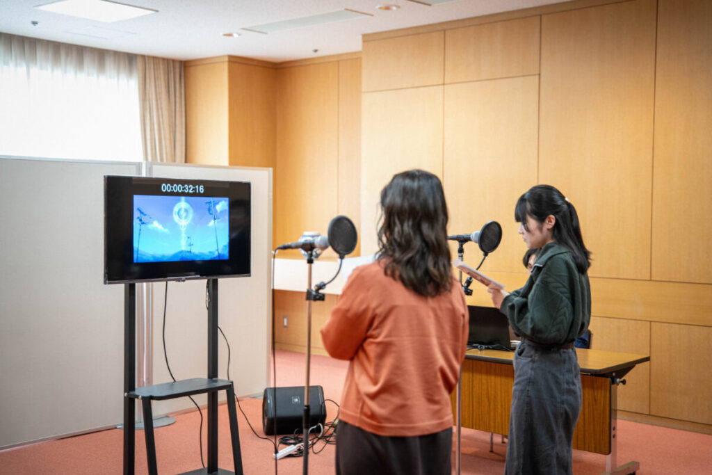 実際のアニメ映像に合わせてセリフを読むアフレコ体験ブースは、終日参加者が途切れない人気コンテンツに。